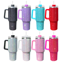 الولايات المتحدة الأمريكية مستودع الصين 40 أونصة كوب التخييم في الهواء الطلق جدار مزدوج حجر الراين الفولاذ المقاوم للصدأ سوبر سباركلي مع مقبض