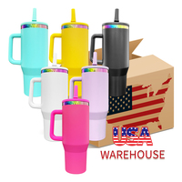 Склад из США, Китай, H3.0, 40 унций, пустые сублимационные яркие цветные кружки из нержавеющей стали с плоской крышкой и ручкой